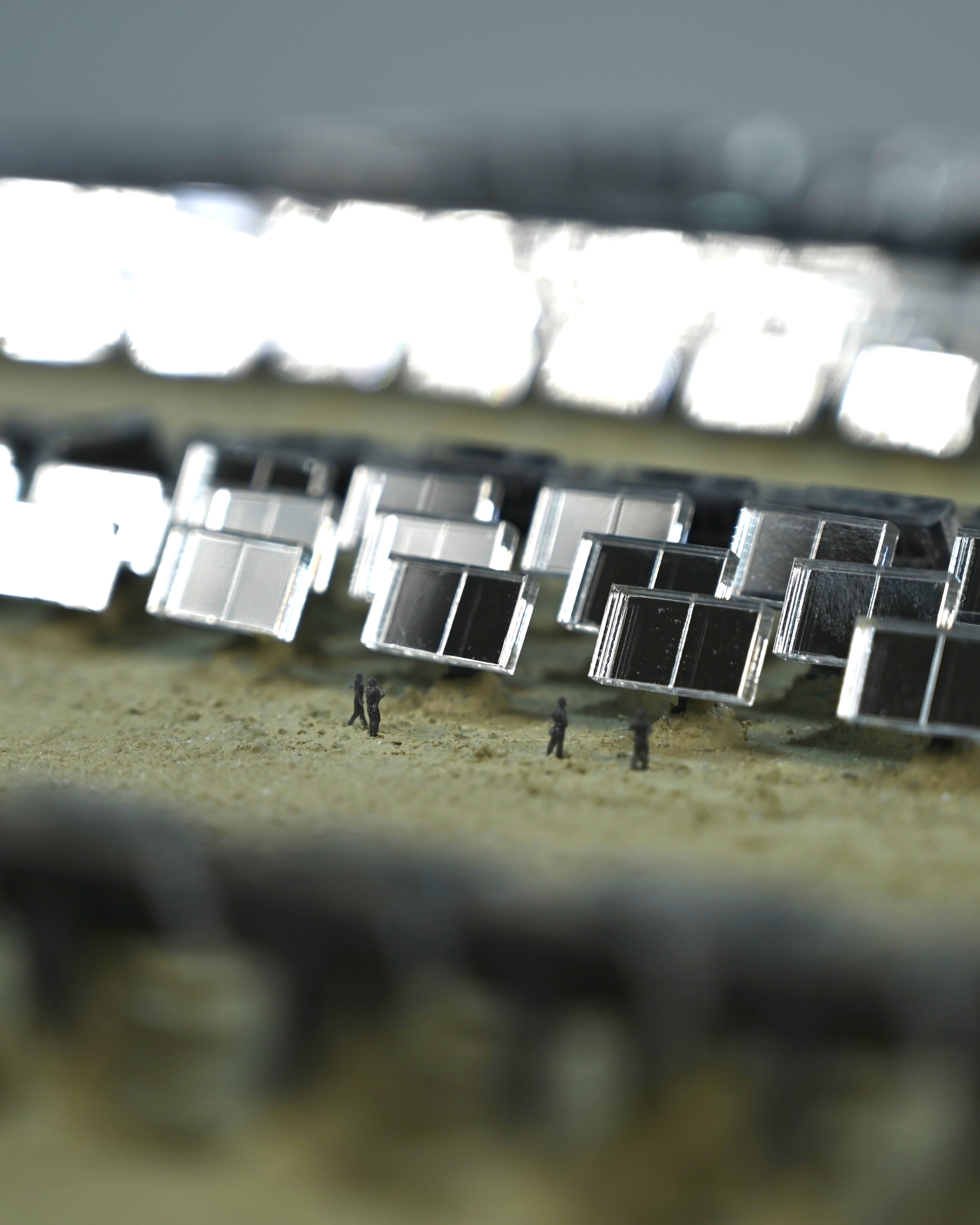 Birch ply, resin, epoxy, acrylic, electronics, diorama paint, sand